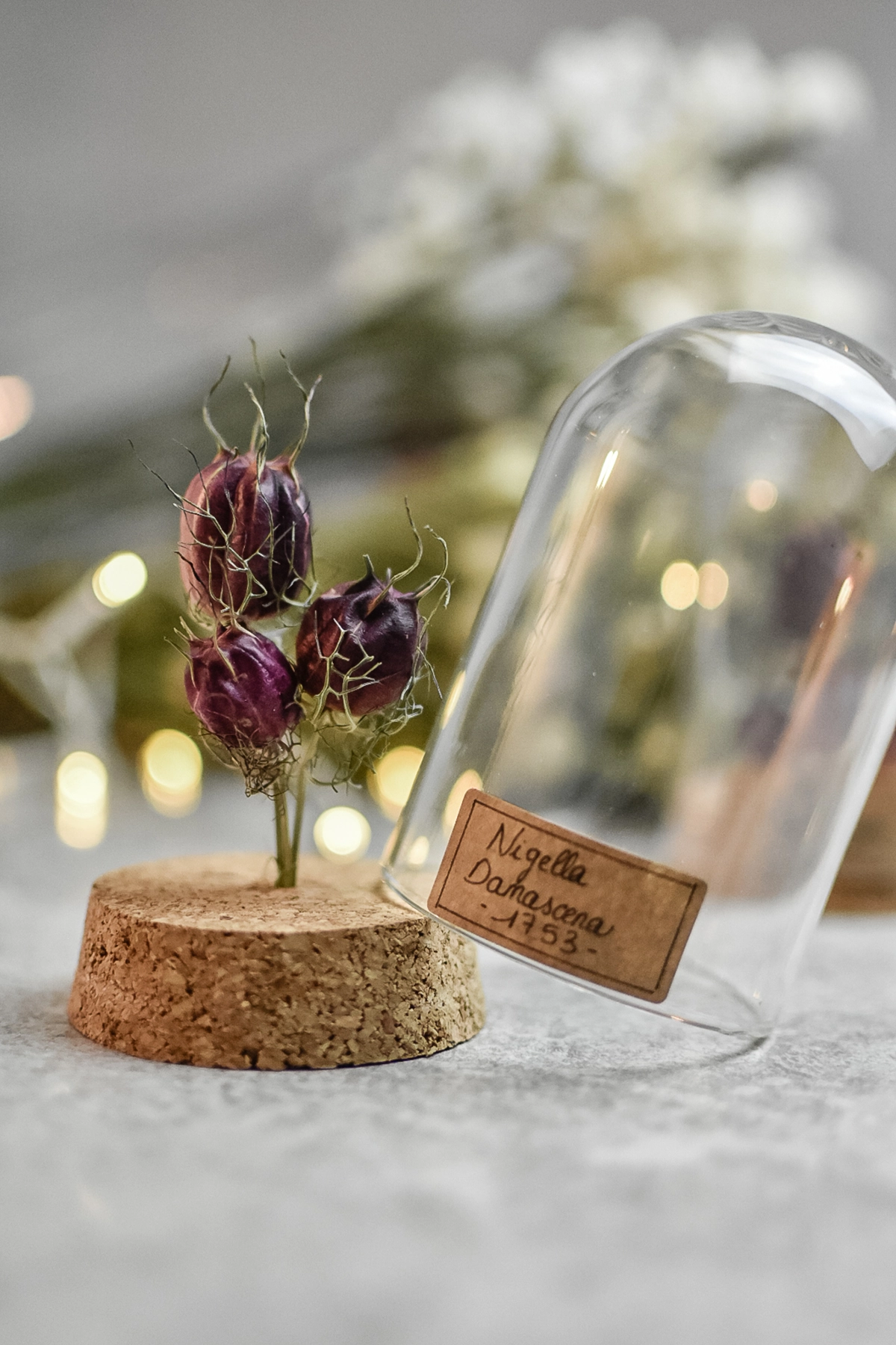 Fleur séchée sous dôme – Nigelle de Damas